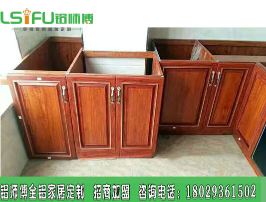 鋁師傅廚房仿木紋封閉式吊式全鋁櫥柜定制設(shè)計(jì)裝修效果圖
