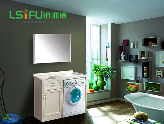 如圖1(晉通款全鋁智能洗衣機浴室柜定制設(shè)計裝修效果圖)