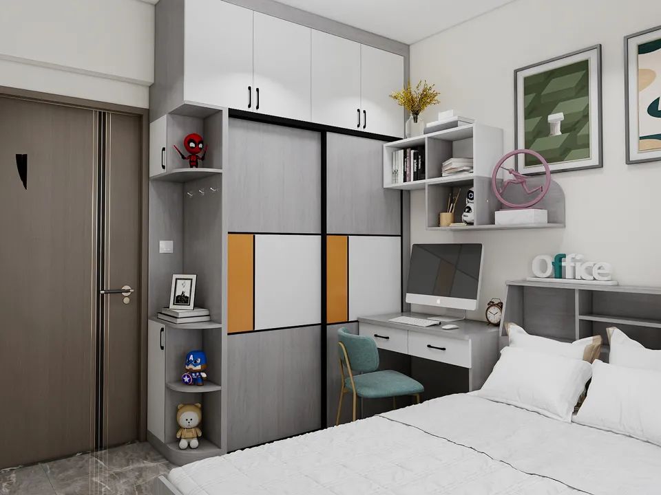 兒童房雖小,上下床的設(shè)計,二胎來臨也不怕房間不夠。兒童房全鋁書桌柜與全鋁衣柜組合的設(shè)計效果成為整個房間的亮點所在。