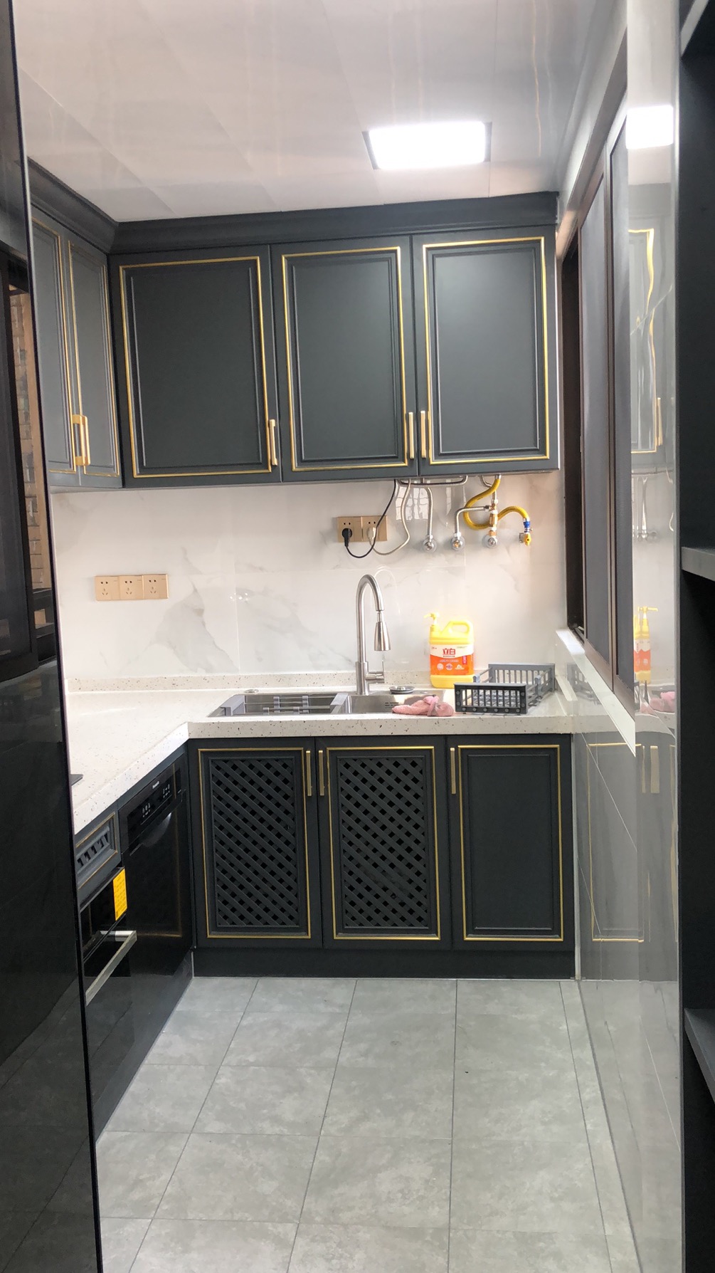 高級灰搭配摩登金色也是很多人喜歡的,非常高級。全鋁櫥柜防水防火防蟲蛀,健康環(huán)保不變形,結(jié)實(shí)耐用好清潔。