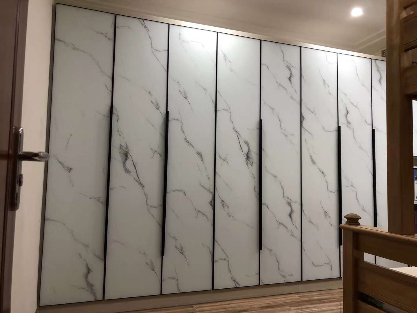 3、石材紋理,輕奢之王。石材肌理的衣柜面板也是近些年火起來(lái)的,很適合輕奢風(fēng)裝修的家。