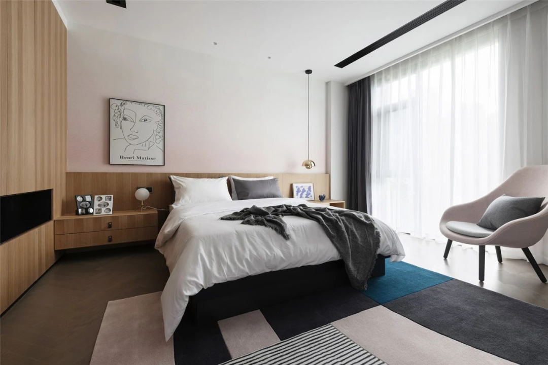 另外,一體式床頭柜還可以選擇用懸空柜的做法。