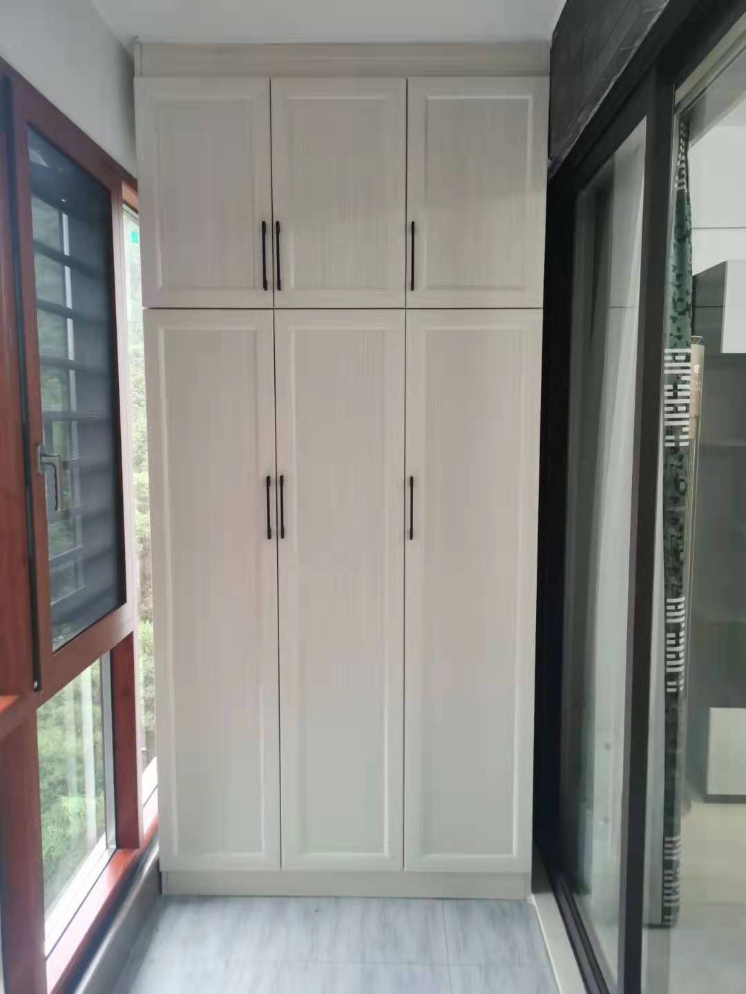 陽臺的另一邊做了一個到頂儲物柜,清潔用品、拖把、掃地機等可以通通收起來,還陽臺一個干凈整潔!