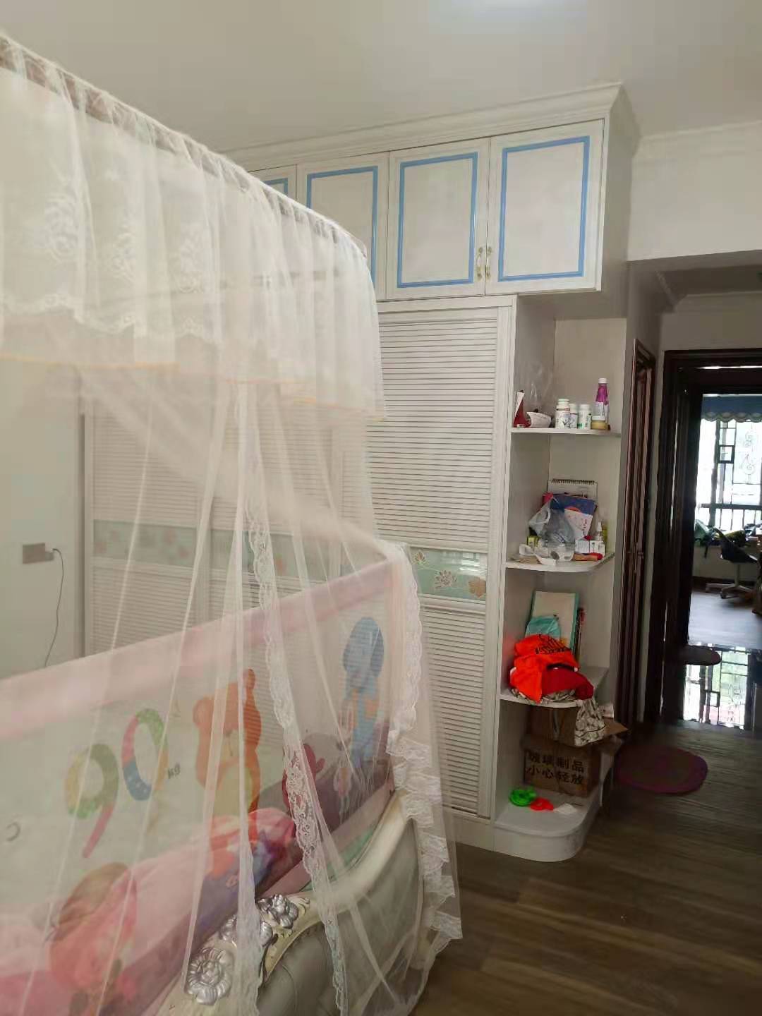 次臥也做了一個移門衣柜,風格與主臥類似,移門開啟不占地方,被別適合緊湊型房間。