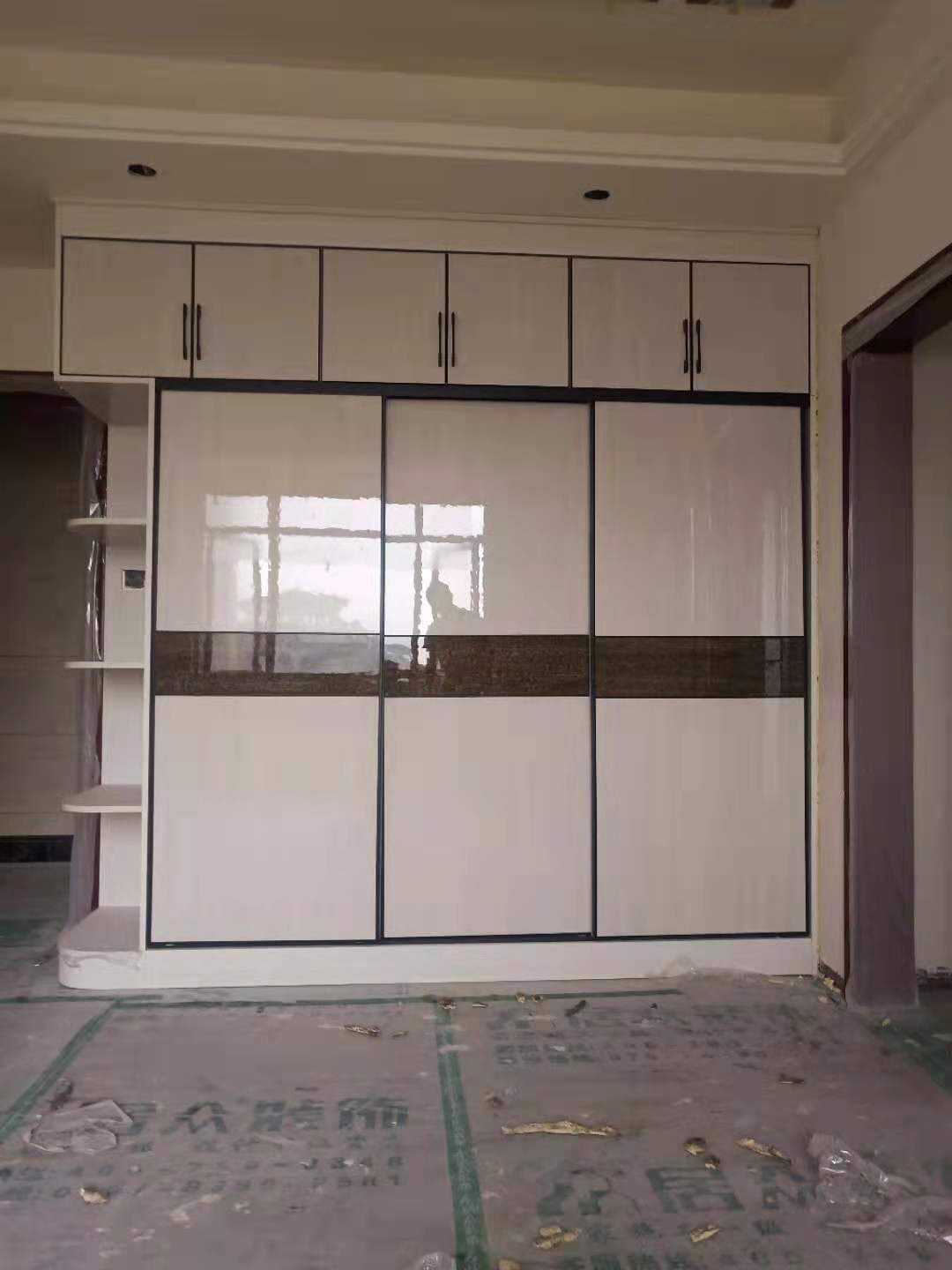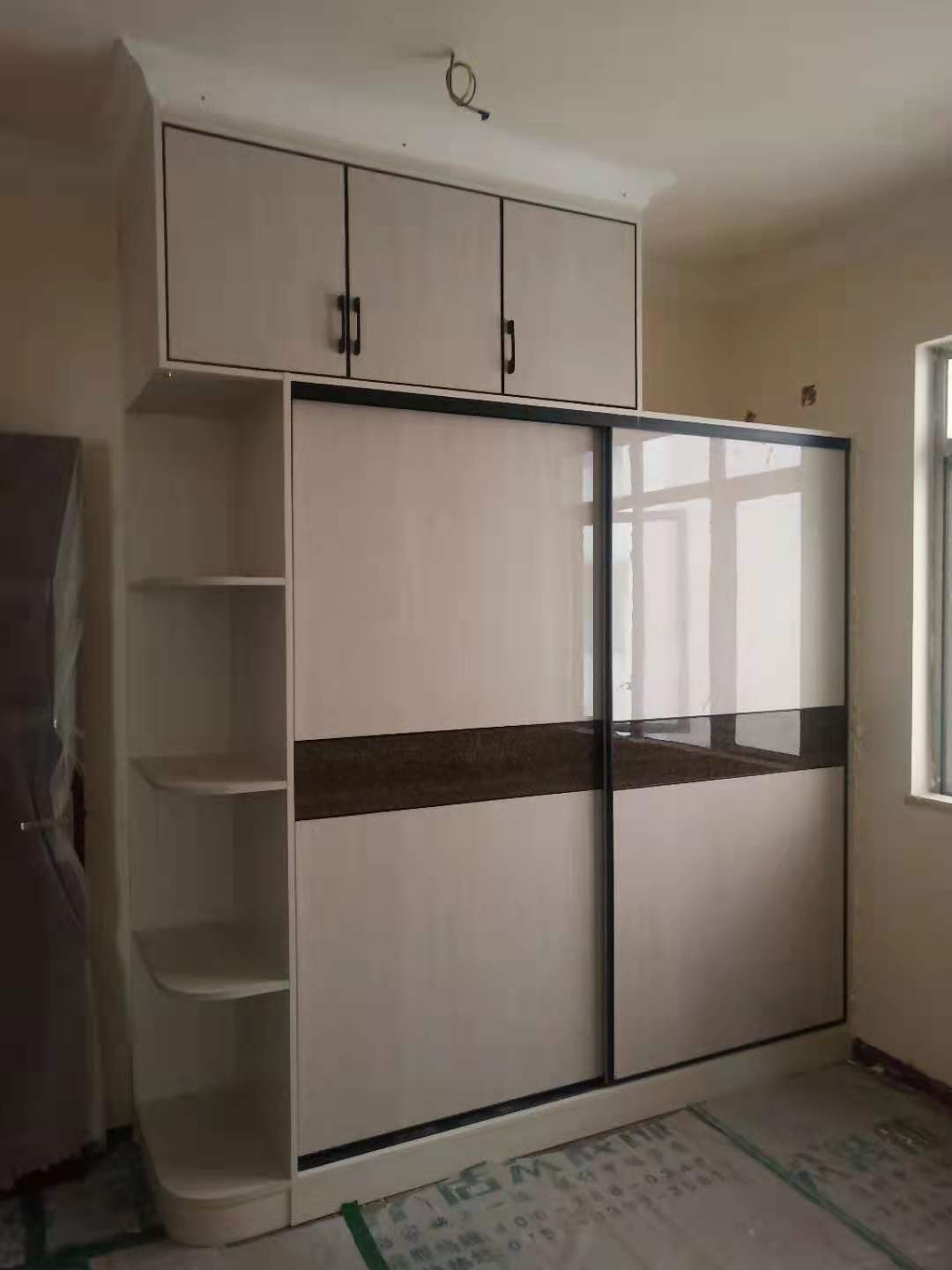 全鋁移門衣柜,吊柜的一邊留作空調(diào)位,靠門轉(zhuǎn)角做開放式圓弧設(shè)計(jì),老人小孩出入更安全。