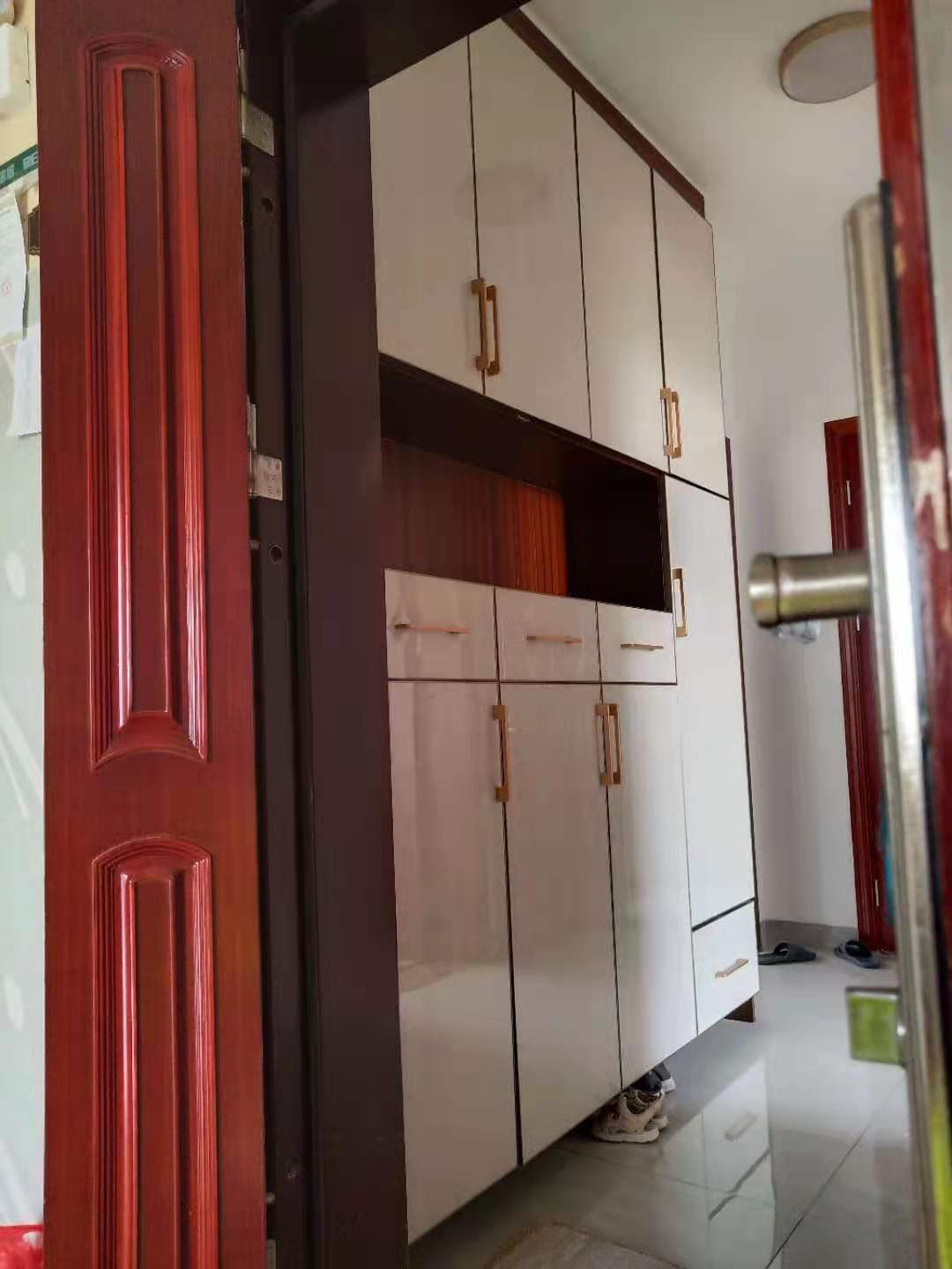 主人房的門后邊有個(gè)凹位做個(gè)內(nèi)嵌式儲物柜正合適,夫妻倆的過季鞋、旅行箱、包包、首飾都可以在這里找到容身之地。