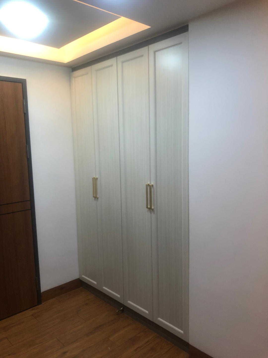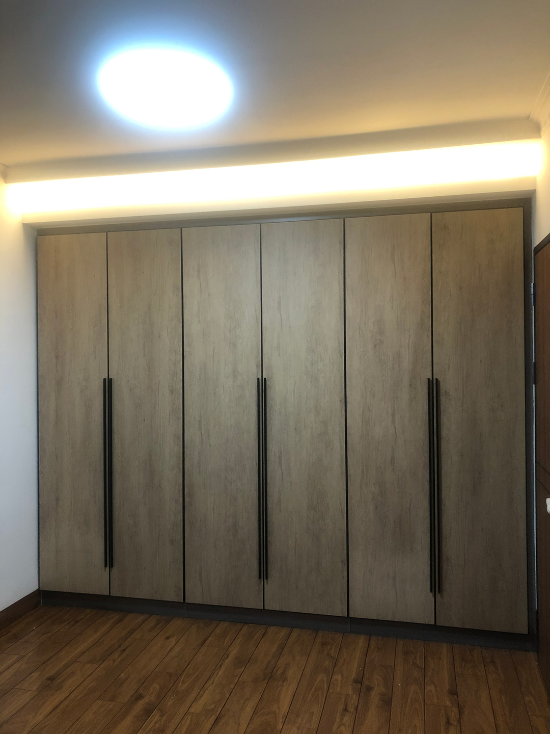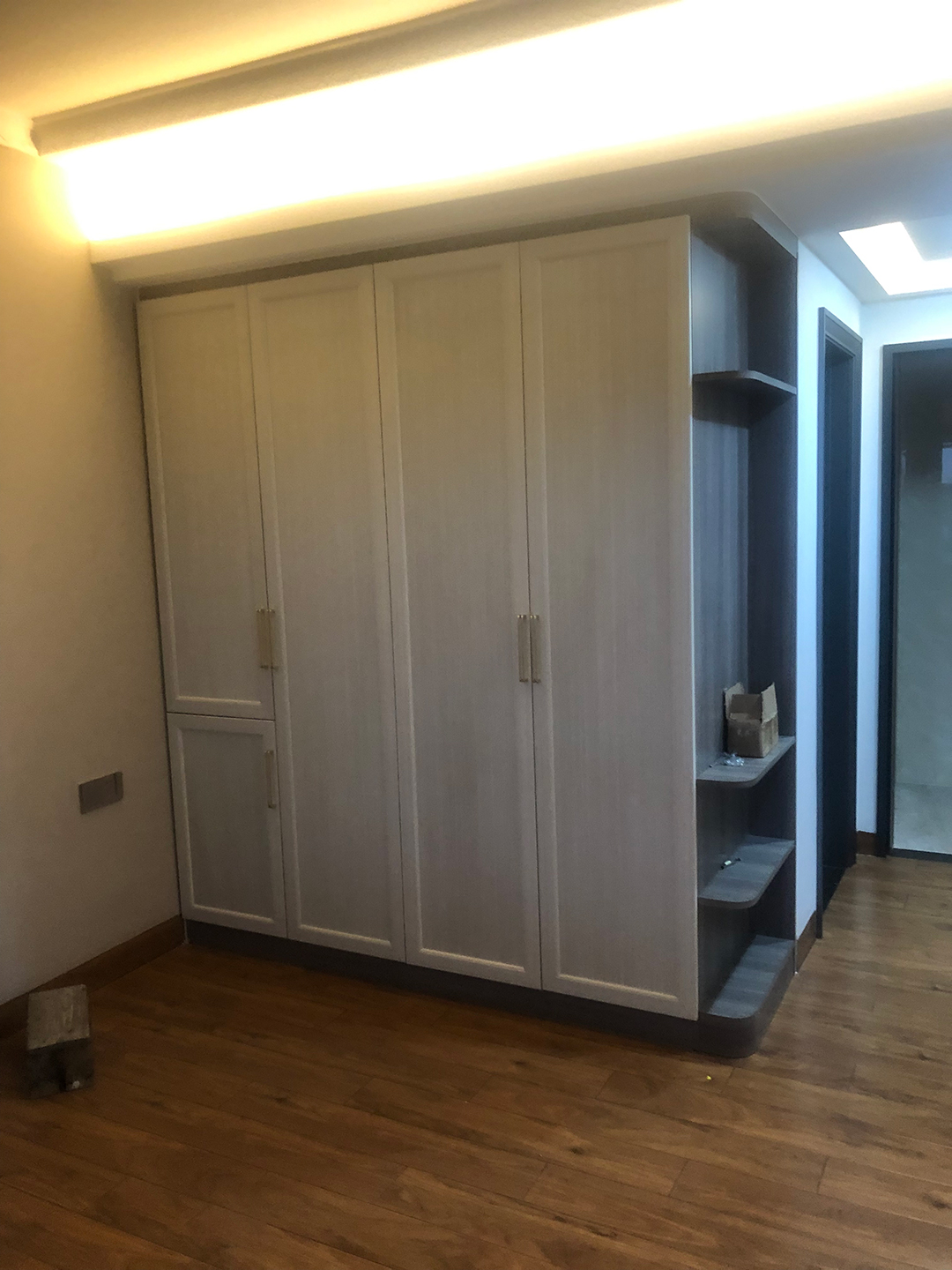 在靠近主衛(wèi)的一邊定制了一個(gè)歐式極簡(jiǎn)衣柜,柜體是焊接整板北歐松木灰,門(mén)板是歐式63框北歐書(shū)香桐門(mén)板,轉(zhuǎn)角的地方做了圓弧處理,不易磕碰!