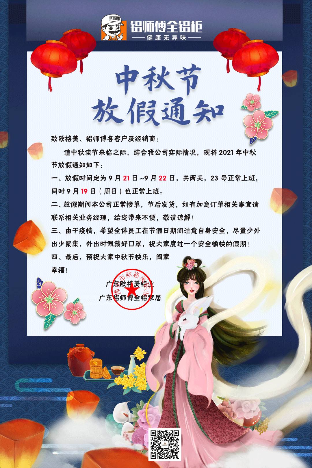 值中秋佳節(jié)來臨之際,結(jié)合我公司實際情況,現(xiàn)將2021年中秋節(jié)放假通知如下: