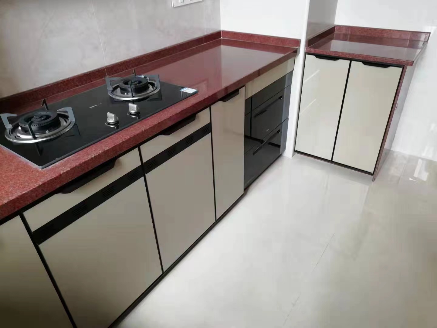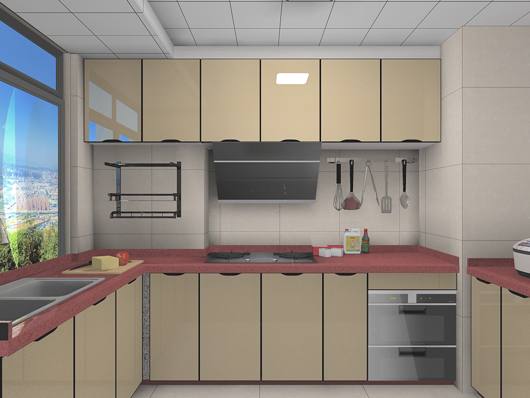 廚房是U型結(jié)構(gòu),按著勞動動線設(shè)置洗手臺→切菜區(qū)→裝盤區(qū)→烹飪區(qū),做飯不累,多一個(gè)人幫忙也不會亂。
