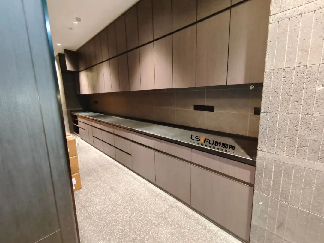 廣州酒家定制的款式是餐邊柜和櫥柜,因為酒家的裝修風格偏中式風,所以在搭配顏色也顯得沉穩(wěn)大氣。