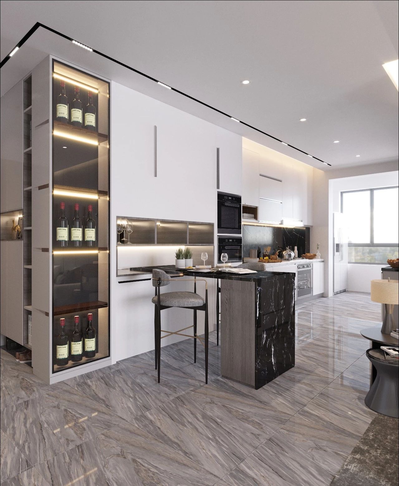 L型吧臺(tái)餐邊柜:半開放設(shè)計(jì),吧臺(tái)就餐,吃下午茶,精致美好。即能緩解廚房空間及功能的壓力,又滿足收納需求的同時(shí),顏值也是狠狠愛住了。