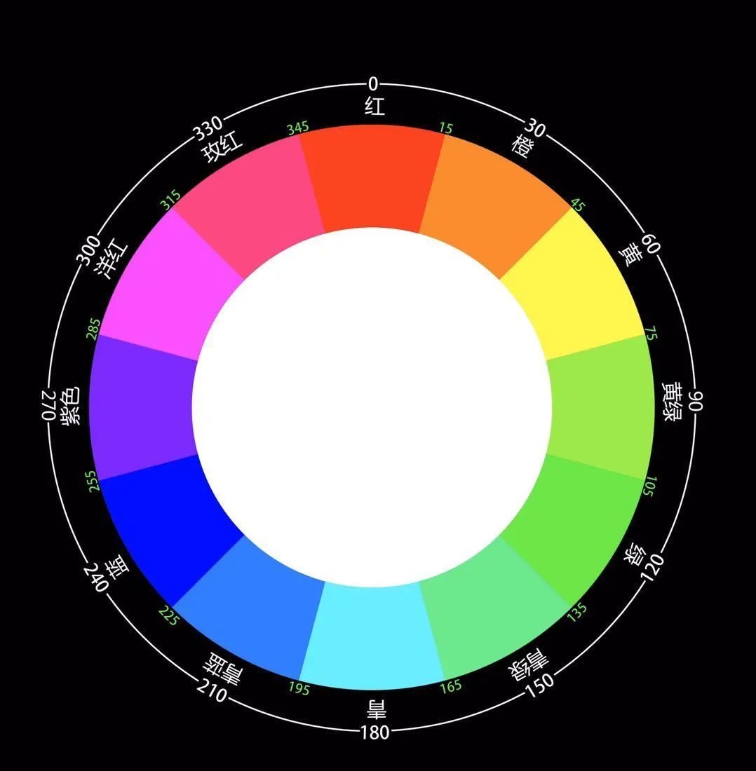 除了黑、白、灰三種無彩色,任何色彩都有色相。設(shè)計(jì)常用到的色相環(huán)就是最直觀的表達(dá)。